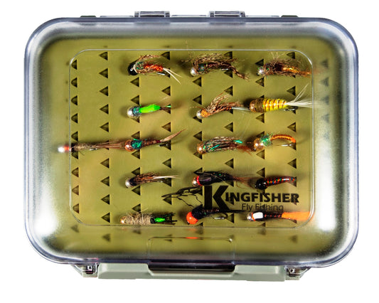 Large Barbless Tungsten Nymphs 16 pc's for Fast Streams In Deluxe Silicon Lined Fly Box