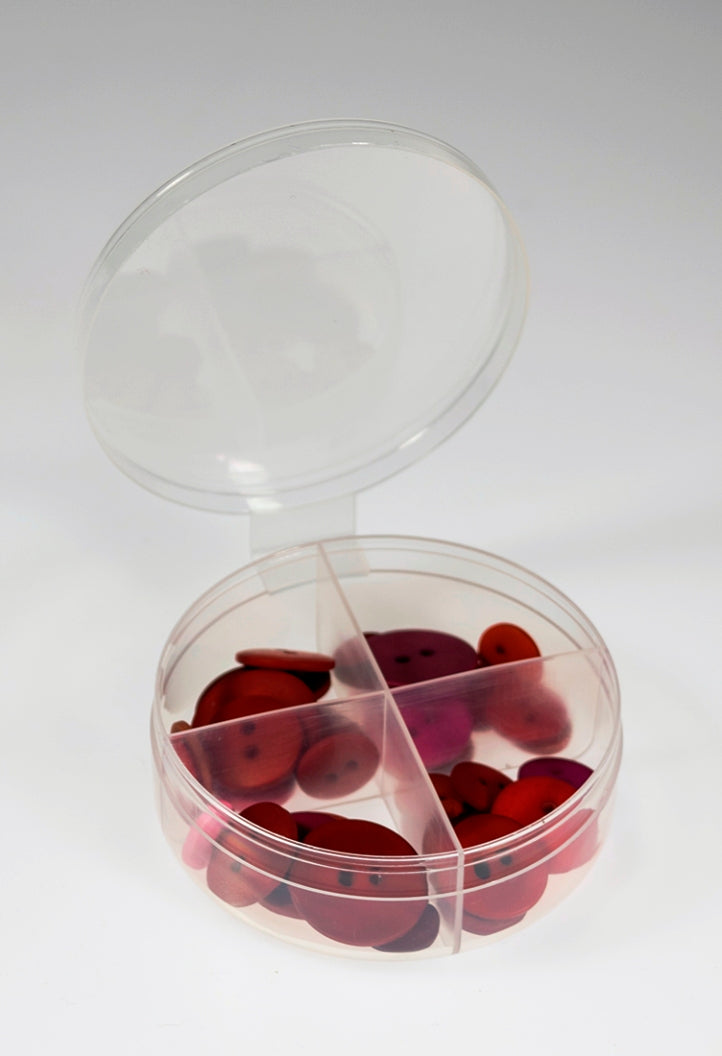 New Phase 100 Bulk Pack -Four Way Divided Round Plastic Containers--w/ Attached Lids -#1386-100 Count