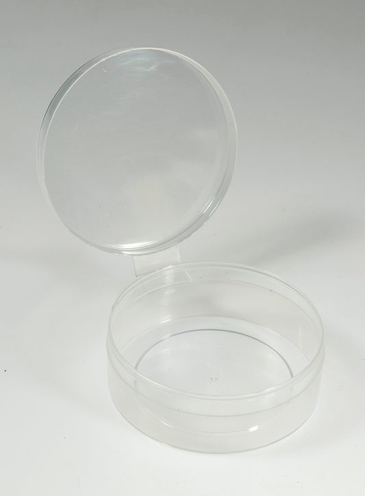 New Phase Bulk 100 Count - Clear Round Plastic Containers w/ Tethered Lids #1633