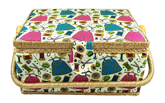 Tidy Crafts Large Fabric Covered Sewing Basket w/ Handy Insert Tray and Sewing Notions Item 1475