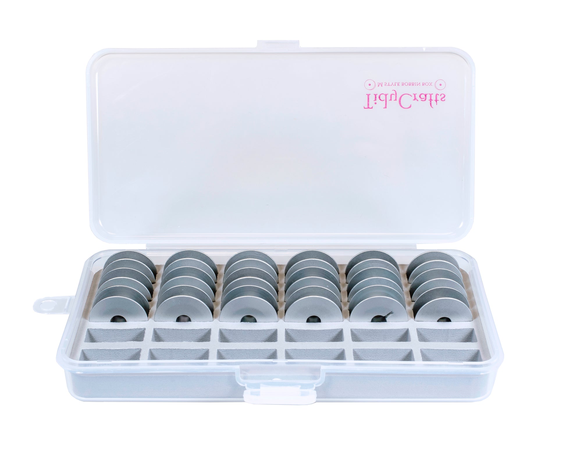 - Keep your bobbins clean, organized, and in full view in these strong poly boxes with convenient hang tabs and snap tight lids