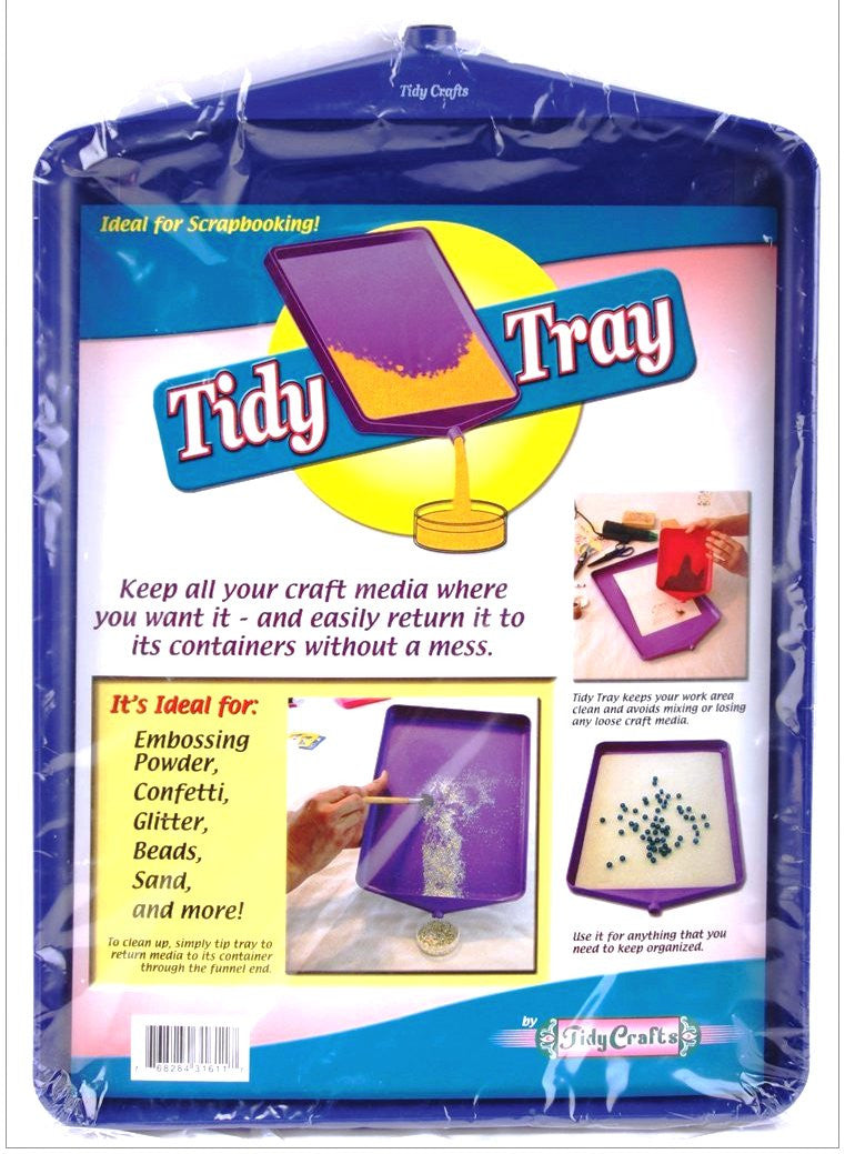 - Tidy Crafts -Tidy Tray. Keep all your craft and media where you want it and easily return it to its container without a mess. Ideal for embossing powder, confetti, glitter, beads, sand, and more!